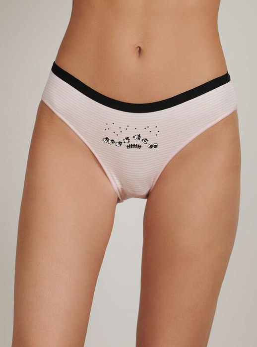 Женские трусы от торговой марки Индефини.  Трусы-слипы из хлопка, розового цвета, с принтом, в полоску спереди, на мягкой резинке, средней посадки. Состав: 95% хлопок 5% эластан