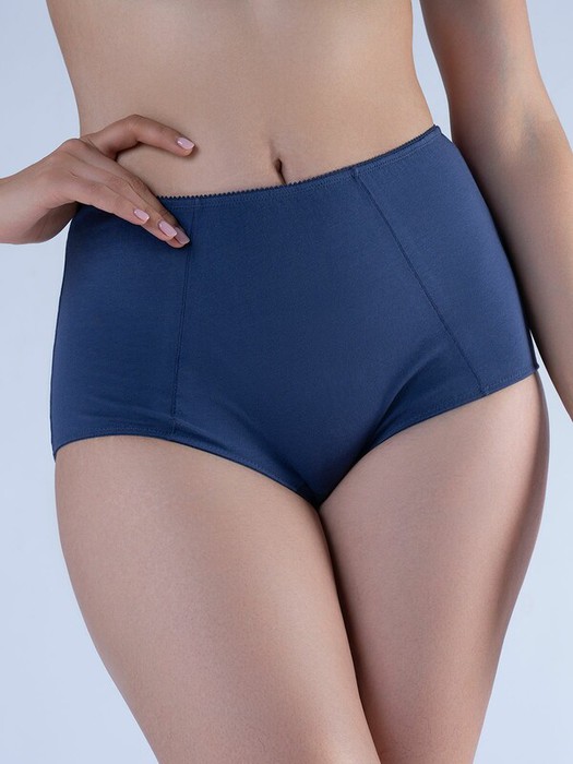 Комфортные слипы синего цвета с завышенной линией талии, выполненные из хлопка с добавлением эластана для мягкости и идеальной посадки. Плотная эластичная резинка обеспечивает надежную фиксацию.