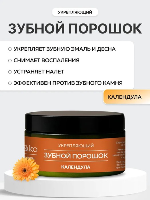 Натуральный зубной порошок Календула хорошо очищает, минерализует и способствует оздоровлению зубной эмали.