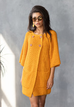 Застежка центральная на петли и пуговицы. На деталях переда накладные карманы с притачными планками, на которые прикреплены декоративные пуговицы. Рукава втачные одношовные длинные, с притачными манжетами. Линия плеча спущена. По низу кардигана, по краю борта и горловине - притачная планка.