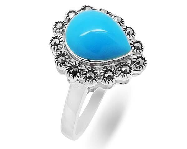 Кольцо, бирюза пресс. , марказит, SL-AGA80