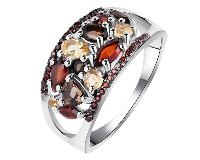 — Кольцо, гранат , раухтопаз , цитрин, Сиена