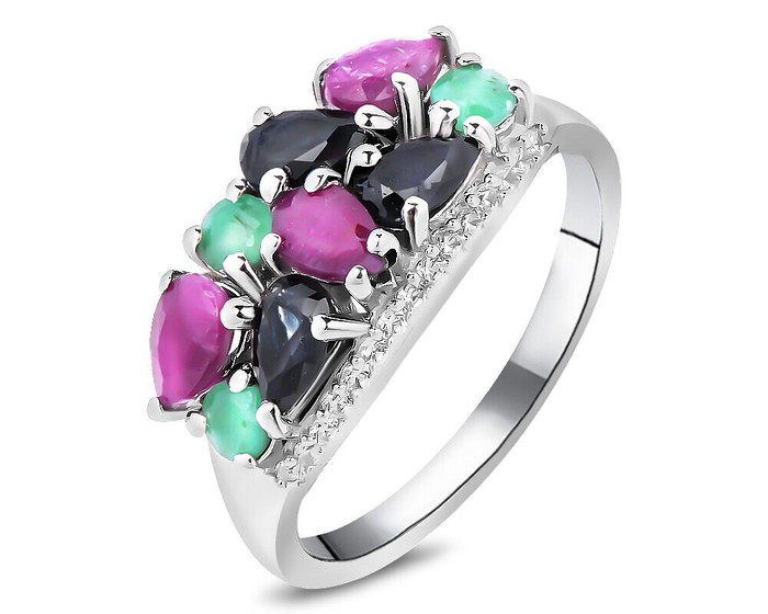 Кольцо, арт.658358 Серебро Серебро 925, р. 17, 3,22 гр., изумруд берилл , рубин корунд , сапфир корунд