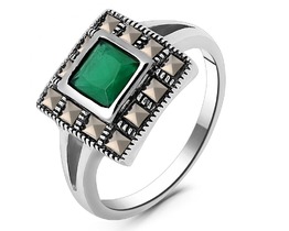 Кольцо, марказит , синт.изумруд, SL-AGA1549