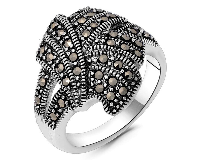 Вес: 7.8 г Вставка: Марказит Цвет камня: Серый Производство: Таиланд Покрытие: Оксидирование Размер колец: 181919.52020.5 Количество: 11Кольцо, арт.656398 Серебро Серебро 875, р. 19.5, 7,8 гр., марказит