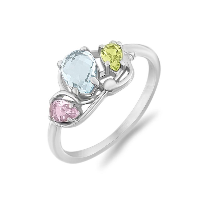 Кольцо, арт.654223 Серебро Серебро 925, р. 17, 1,92 гр., морганит , перидот , топаз