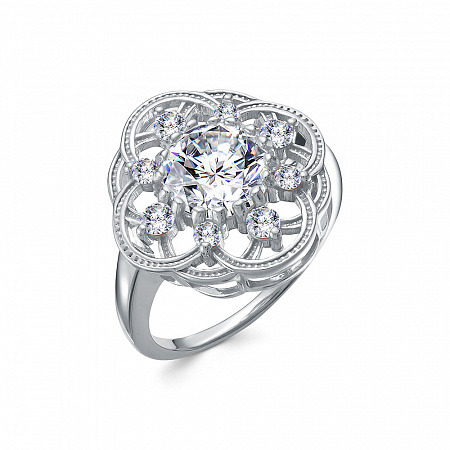 Кольцо с фианитом родированное серебро 925*