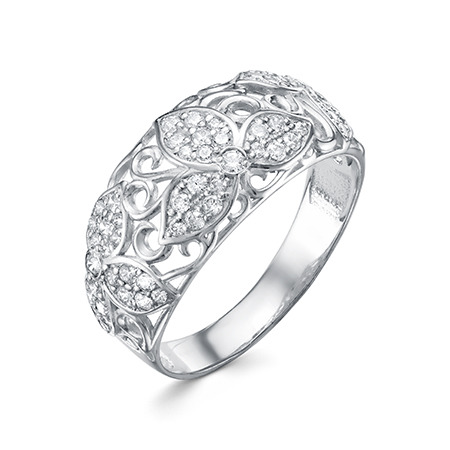 Кольцо с фианитом родированное серебро 925*
