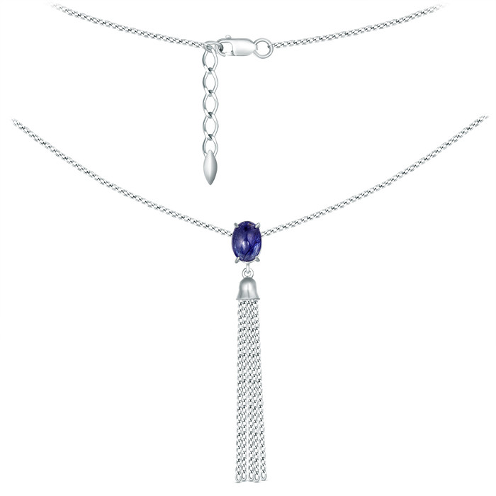 Колье из серебра с сапфиром родированное 925 пробы Кц-2301-5рк1108н