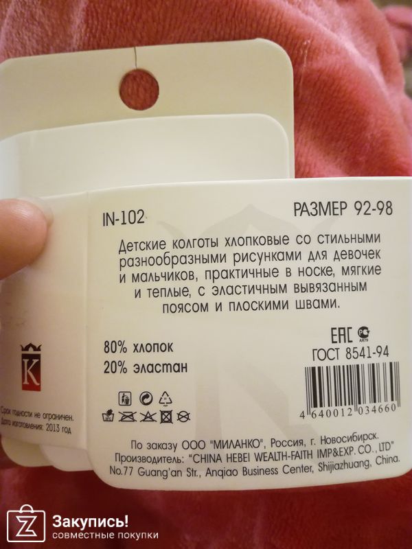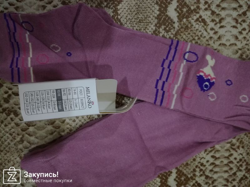 Купила в закупке два вида колготок: 102 и 001, размер 92-98, на фото видно, что голубые колготки меньше, а серые наоборот больше, хотя размер у всех заказан одинаковый. Ну видимо так бывает у производителя, колготки в принципе все нам с запасом, кроме голубых, они как раз уже сейчас, поэтому заказывать надо обязательно на размер больше. Качество и цвет колготок хороший, меня все устраивает, фото размерной сетки и состава прилагаю, Организатору огромное спасибо, что учитывает пожелания по цвету.