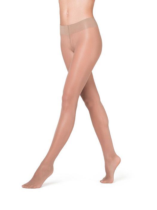 Тонкие эластичные колготки  с заниженной талией, однородные по всей длине, создающие эффект обнаженности (NUDO), с комфортным широким поясом - резинкой, обладающей поддерживающим эффектом, c плоским швом, гигиеничной хлопковой ластовицей и невидимым  усиленным мыском. Формованная ступня.