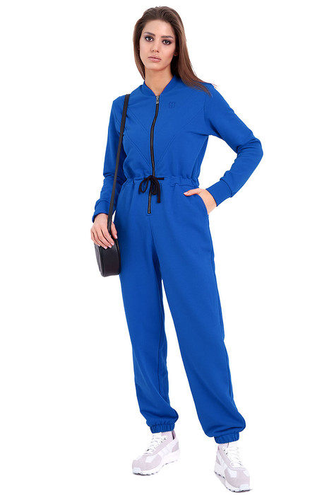 Женственный комбинезон полуприлегающего силуэта. Манжеты рукавов, мини-стойка выполнены из ткани компаньона - кашкорсе в цвет.