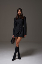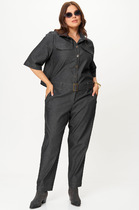 Комбинезон с застежкой на навесную петлю и пуговицу по горловине спинки, с цельнокроенным рукавом- крылышко. Лиф переда с V-образным вырезом горловины, полочки расположены на запах. Лиф спинки со средним швом. Комбинезон с втачным поясом. Пояс присборен эластичной нитью- венгеркой.