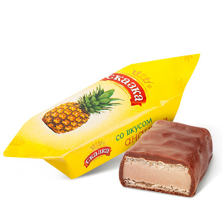 Вкус, знакомый с детства! Классическая конфета между слоями вафель со вкусом сочного ананаса глазированная нежной шоколадной глазурью.