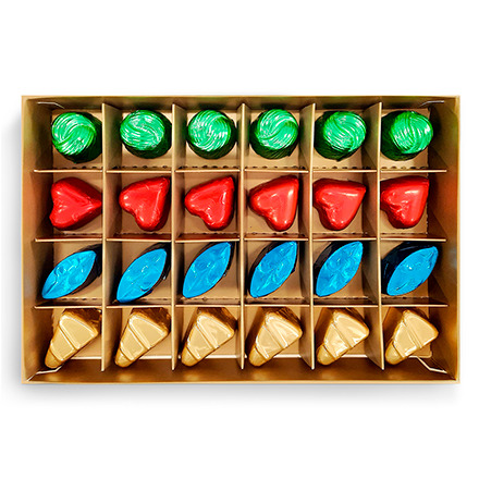 Микс конфет ручной работы с ликерной начинкой. В наборе 24 конфеты, без подарочной упаковки.