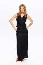 Костюм женский. В комплект входит футболка с рукавом 3/4 и бриджи ниже колен, без карманов. По переду асимметрия из двух видов ткани.