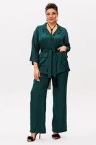 Костюм женский из велюра состоит из кофты и брюк. Кофта прямая, горловина круглая, обработана обтачкой, рукав длинный, втачной, внизу на манжете, на полочке принт, низ изделия с поясом. Брюки прямые, верх на поясе с резинкой, два внутренних кармана, на передней половинке брюк принт, низ брюк с манжетами.
