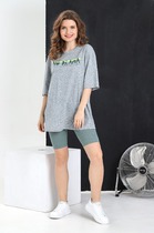Костюм из кулирки, с печатью, с оригинальным поясом на бриджах