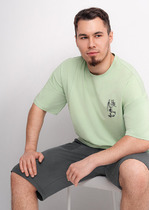 Мужской костюм состоит из футболки с печатью и шорт.  Подходит для дома, отдыха и работы на даче.