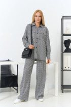 Блистать всегда и везде – девиз этого года, который воплотить в жизнь поможет костюм с люрексом. Костюм, состоящий из блузона и брюк. Такой вариант обязательно оценят девушки, которые любят привлекать к себе внимание. Еще в том году, брюки с лампасами были в новинку, а в этом сезоне они стали частым гостем в повседневных образах. В них кроется особая прелесть, наверное, потому что они позволяют привычным вещам играть по-новому, более интересно. Вертикальные полоски отлично удлиняют силуэт, а это еще один плюс в копилку этой модной вещи. Состав трикотажа: 75% хлопок, 20% полиэстер, 5% спандекс.