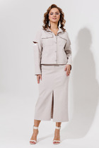 Костюм состоит из толстовки и брюк. Брюки на поясе, с боковыми карманами, с лампасами из отделочного полотна по боковым швам, на эластичном манжете. Толстовка прямая, на молнии, с капюшоном, с карманами "кенгуру", длиной до середины бедра. В нижней части боковых швов обработаны разрезы-шлицы, украшенные декоративной тесьмой. Рукав длинный, с лампасами из отделочного полотна вдоль рукава, на эластичном манжете.