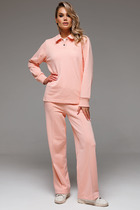 Костюм женский из гладкокрашенного трикотажного полотна в рубчик («лапша»), состоящий из футболки и леггинсов. Футболка – удлиненная, свободного покроя, со спущенной, линией плеча, короткими втачными рукавами, горловиной овальной формы, обработанной втачной планкой.Леггинсы – длиной до колен, с эластичной тесьмой по талии.
