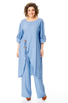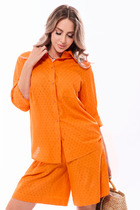 Костюм юбочный,сочетание полоски ,хлопка и трикотажа создает шикарный образ как для работы,отдыха,так и для повседневной жизни.Рубашка женская выполнена из хлопоковый ткани, с отложным воротником на стойке, с центральной застёжкой на петли и пуговицы. полочки с нагрудными вытачками с накладными карманами к клапанами, застёгивающиеся на петли и пуговицы, рукава рубашечного кроя, с притачными манжетами, застёгивающиеся на петли и пуговицы. спинка цельная, по бокам обработаны разрезы. джемпер женский выполнен из премиум трикотажа, свободного силуэта,с V-образным вырезом горловины, со спущеным плечом, рукава 7/8. По полочке серебрянная дизайнерская печать, по низу серебрянная вставка. Спинка со средним швом. Горловина обработана бейкой.Юбка женская асиметричного кроя, из классической костюмной полоски, по переду пояс вставка сошлёвками, по спинке пояс с эластичной резинкой.