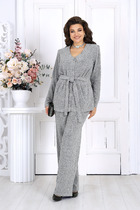 Костюм молодежный из гладкокрашеного трикотажного полотна «футер-двунитка», состоящий из джемпера и брюк. Джемпер – с втачными длинными рукавами, горловиной овальной формы, обработанной втачной планкой, разрезами в боковых швах и принтом на передней детали, выполненным в технике шелкографии. Основная деталь переда отрезная на уровне груди, рукава – с притачными манжетами, по низу полочки настрочен декоративный элемент. Брюки длинные, классического покроя, на притачном поясе с эластичной тесьмой внутри и карманами в боковых швах. Передние половины застрочены по линиям центра, на задних половинах обработаны две вытачки в области линии талии.