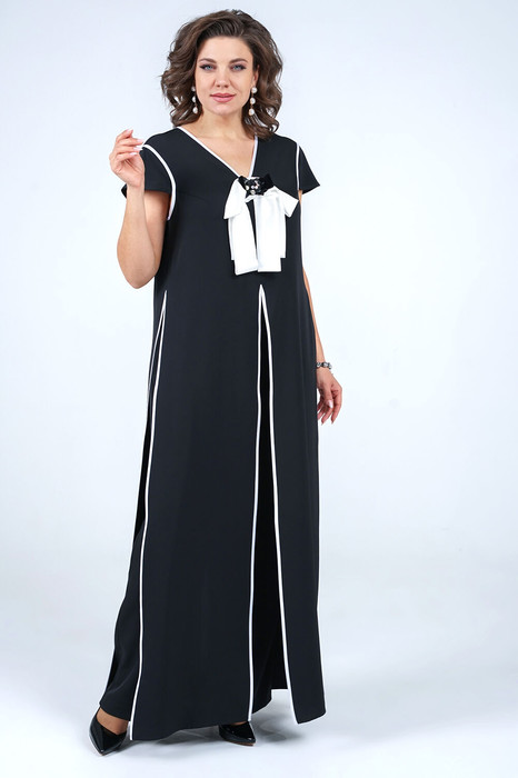 Блузон женский прямого силуэта, перед, спинка и боковые с разрезами. Перед с нагрудными выточками.  Рукав крылышко. Горловина, пройма, разрезы обработаны окантовочным швом. По переду декорированный съёмным бантом.