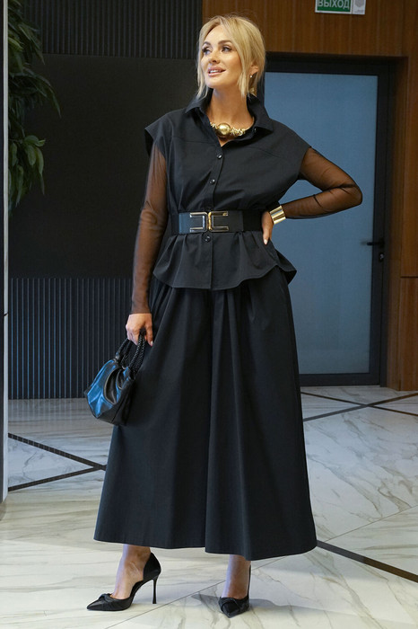 Комплект женский 3-х предметный состоит из блузки, блузы и юбка-брюки. Пояс в комплекте.