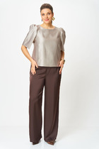 Брюки прямого силуэта на притачном поясе. По переду застежка на тесьму-молнию. По боковым действующие карманы.
