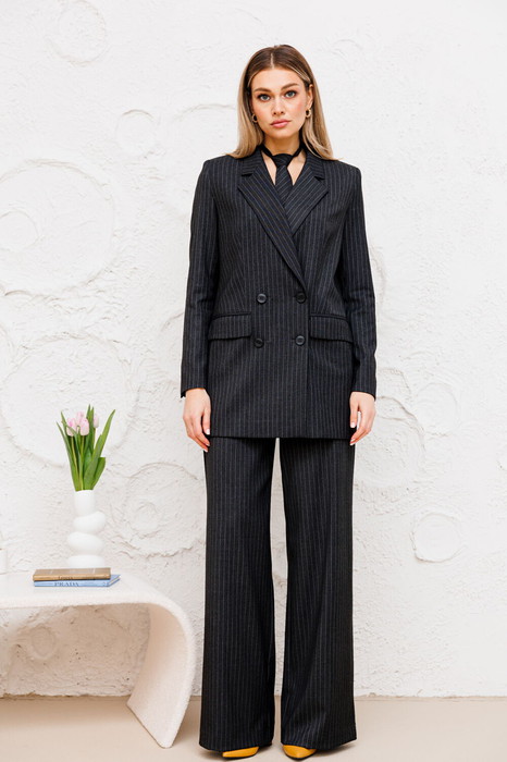 Костюм трехпредметный, состоящий из брюк, жакета и галстука.