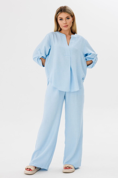Брюки палаццо свободного кроя с притачным поясом на резинеке. В боковых швах карманы.