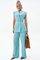 Брюки полуприлегающего силуэта, зауженные к низу. По переду боковой карман, застежка на тесьму-молнию и пуговицу. Длина брюк 99 см.
