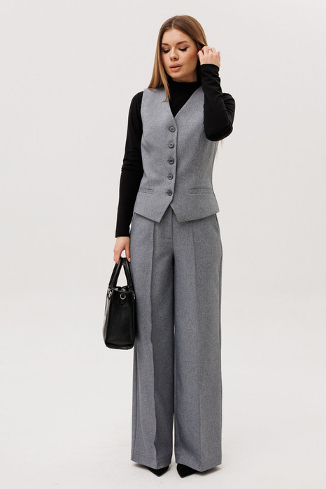 Жилет прилегающего силуэта,с V- образным вырезом, на подкладке. По переду рельефа карманы "листочки", застёжка на петли-пуговицы. По спинке вытачки.