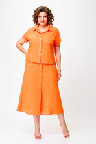 Брючный комплект состоит из блузки и брюк. Блузка из сатиновой ткани очень лёгкая и в тоже время не просвечивается. Втачной рукав по низу манжета с пуговицей, она подворачивается(по желанию).Воротник мужской на стойке.По переду планка на одну пуговицу, с низу блузка завязывается на узел. Спинка свободного силуэта полукруглая,немного длиннее переда. Брюки классические на поясе с резинкой. Застёжка на гульфик и тесьму-молнию.