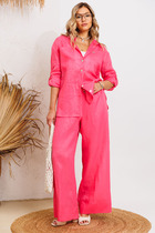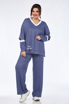 Комплект женский 2-х предметный (блузка, брюки). Модель из текстильной ткани. Комплкет легки и дышащий - идеальный вариант на лето. Отлично подойдет для повседневной носки. Блузка с капюшоном прямого силуэта с цельнокроенным руковом "летучая мышь", 3/4 длины с манжетой. Спинка длиннее полочки. По бокам разрезы. Брюки "бананы", пояс на резике, по бокам карманы.По низу брюк-подрезы. В качестве декора: по капюшону и полочке -нашивки, отделка в контраст ткани. Длина блузки (по спинке ): (48-52)- 70см. Длина рукава с манжетой от горловины: (48-52)-50см. Длина брюк: (48-52)-95см.