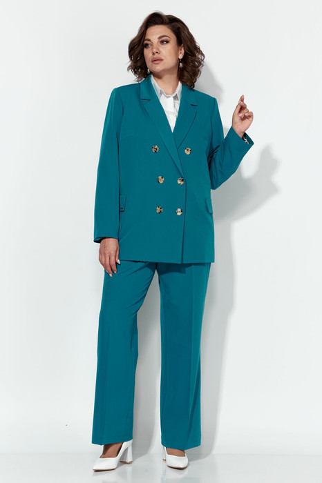 Женский брючный костюм — это идеальное сочетание стиля, комфорта и универсальности, которое станет вашим верным спутником как на деловых встречах, так и на торжественных мероприятиях. Изготовленный из высококачественной  ткани, этот костюм обеспечивает легкость и приятные ощущения при носке, а его элегантный пиджак и классические брюки, подчеркивают вашу женственность и утонченность. Строгий и модный фасон делает его актуальным в любой ситуации, будь то офис, свадьба или выпускной вечер. Костюм изготовлен на подкладке с модным принтом, что добавляет шарма к вашему образу. Выбирая этот костюм, вы выбираете уверенность в себе и безупречный стиль, который никогда не выйдет из моды. Позвольте себе быть великолепной в каждой детали! Брючный костюм женский — это не просто одежда, а воплощение элегантности и стиля, которое идеально подходит для современной женщины. Костюм брючный женский деловой станет вашим незаменимым спутником в офисе, подчеркивая вашу профессиональность и уверенность. Женские брючные костюмы классические всегда остаются в моде, благодаря своему универсальному дизайну и высокому качеству материалов. Женские брючные костюмы с пиджаком создают гармоничный и завершенный образ, который подходит как для деловых встреч, так и для вечерних мероприятий. Костюм с брюками осенний женский обеспечит вам комфорт и легкость в осенние дни. Этот костюм станет вашим любимым выбором для любого сезона, будь то весна, лето или осень. Выбирая женский брючный костюм от Anastasia, вы выбираете стиль, комфорт и уверенность в себе. Костюм женский 2-х предметный: жакет на подкладке и брюки. Жакет полуприлегающего силуэта: бочок с выточкой по полочеке, по спинке средний шов. Застежка двухбортная, карман клапан "обманка". Рукав вточной двухшовный. Брюки прямые со стрелками. Застежка по передней части на молнию. Пояс отрзной, по бокам вставлена резинка. Длина жакета: (48-52)73см, (54-58)-74см . Длина рукава: (48-58)-62см. Длина брюк: (48-52)-105 см, (54-58)- 107см