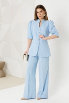Оригинальный женский костюм от бренда Anastasia, идеальный выбор для повседневной носки, офиса и прогулок. Стильный и комфортный костюм сочетает в себе современный дизайн и удобство, что делает его универсальным вариантом на каждый день. Костюм состоит из жакета и брюк. Жакет свободного силуэта, без подкладки, с V-образным вырезом и асимметричной застежкой на пуговицы. По переду расположены накладные карманы, один из которых дополнен декоративным принтом. Рукав втачной, длиной 3/4, линия плеча слегка спущена, что добавляет образу легкости и актуальности. Брюки прямого силуэта, укороченные, со средней посадкой. Пояс комфортный, обеспечивает удобную посадку и свободу движений. Крой брюк визуально вытягивает силуэт и подходит для разных типов фигуры. Пояс на резинке, по бокам карманы. Стильный женский костюм отлично подойдет для офиса, прогулок, путешествий и повседневной носки. Отдельные элементы костюма легко сочетаются с другими вещами гардероба. Длина спинке:(48-52)-70см. Длина рукава:(48-52)-33см. Длина брюк (48-50) -93см, (52)-95см
