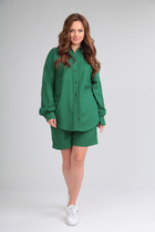 Комплект создан для тех, кто ценит комфорт и элегантность в каждой детали. В комплект входит блузка и штаны палаццо. Оверсайз крой придаёт костюму особый шарм и дает свободу движений. Высокая посадка и резинка по поясу подчёркивает талию и делает силуэт более изящным. Смесь натуральных материалов позволяет пропускать воздух. Ткань не мнется. Благодаря свободному крою костюм подойдёт для разных типов фигуры. Он подчеркнёт вашу индивидупльность. Блузка прямого силуэта, застежка на планку и пуговицы. Воротник на отрезной стойке. По полочке идет ассиметричный подрез со вставками из 2-х видов однотона и разрезом. Плечо спущенное, рукав длинный со вставками, на манжете. По спинке идет кокетка и встречная складка. Брюки полаццо из костюмной ткани, прямые с односторонней складкой и запахом по центру. По низу брюк широкая подгибка.Пояс на резинке . В качестве декора- брендированная металлическая нашивка по подрезу полочки. Длина по спинке (50-54) - 74 см, (56-60) - 76 см. Длина рукава (с манжетой): (50-54) - 57 см, (56-60)-59см. Длина брюк: (50-54) - 98 см, (56-60) - 99 см