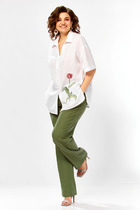 Представляем вашему вниманию стильный комплект, который станет настоящим маст-хэвом в вашем гардеробе. Этот комплект станет вашим верным спутником в любой ситуации, добавляя нотки элегантности и шарма в вашу повседневную жизнь. Комплект женский 2-х предметный (блузка, юбка). Блузка прямого силуэта, из трикотажного полотна двухнитка, со спущенным плечом станет незаменимой вещью в вашем гардеробе. Рукав "летучая мышь", 3/4 длины. Горловина цельнокроенная в виде стойки. В качестве декора -брендированная металлическая нашивка по низу блузки. Юбка расширенная к низу. Пояс на резинке. Для повседневного ношения отлично подойдёт будущим мамам и беременным. Мягкая резинка в поясе не давит и идеально держится на любой талии. Отдельные части крмлекта будут легко сочитаться с вещеми из вашего гардероба. ВНИМАНИЕ! Колье не входит в комплект. Длина блузки(по спинке): (50-60)-60 см. Длина рукава от головины: (50-60) -56см. Длина юбки - 85см.