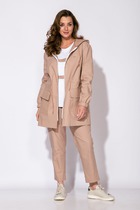 Костюм женский юбочный. Блуза с V-образным вырезом горловины, с декором по полочке, со спущенными рукавами, полочка с нагрудными вытачками, низ блузки на резинке. Юбка с резинкой по спинке и боковым швам пояса. с боковыми наклонными карманами. юбка со вставками по переду.