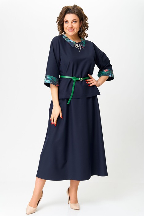 Костюм женский двухпредметный, состоит из юбки длины миди и блузки.
