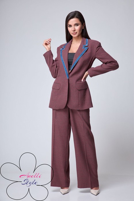 Прямые брюки и слегка приталенный жакет - это классический стиль, который никогда не выйдет из моды. Воротник, декорирован бархатной тесьмой, добавит тебе нотку роскоши и элегантности.