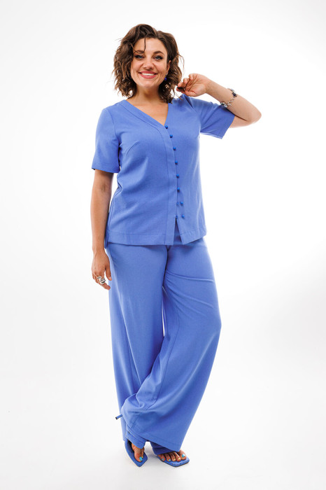 Блуза украшена красивой россыпью пуговиц, придающих ей изысканный вид. Цвета костюма подобраны таким образом, чтобы создать гармоничное сочетание и подчеркнуть вашу индивидуальность.