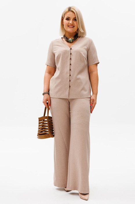 Блуза украшена красивой россыпью пуговиц, придающих ей изысканный вид. Цвета костюма подобраны таким образом, чтобы создать гармоничное сочетание и подчеркнуть вашу индивидуальность.