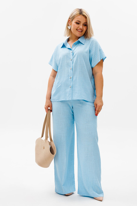 Воплощение стиля и комфорта: льняной костюм с брюками и рубашкой с коротким рукавом от Анелли!