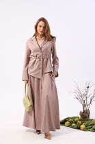 Этот шикарный костюм из беларуского (белорусского) льна состоит из юбки и блузы. Юбка на запах, с карманами, на резинке по спинке.