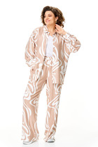 Принт "ягодный раф" словно всплеск красок на холсте, превращает костюм в произведение искусства. Каждая деталь продумана так, чтобы блузу и брюки можно было легко комбинировать с другими вещами — ансамбль звучит гармонично как в дуэте, так и соло.
