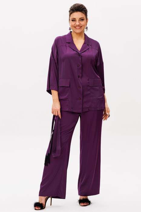 Блуза с изящной линией плеча и расширенным укороченным рукавом создаёт элегантную небрежность. Классический воротник с лацканами и накладные карманы добавляют стильную строгость, а застёжка на пуговицу и декоративный съёмный пояс позволяют играть с силуэтом.